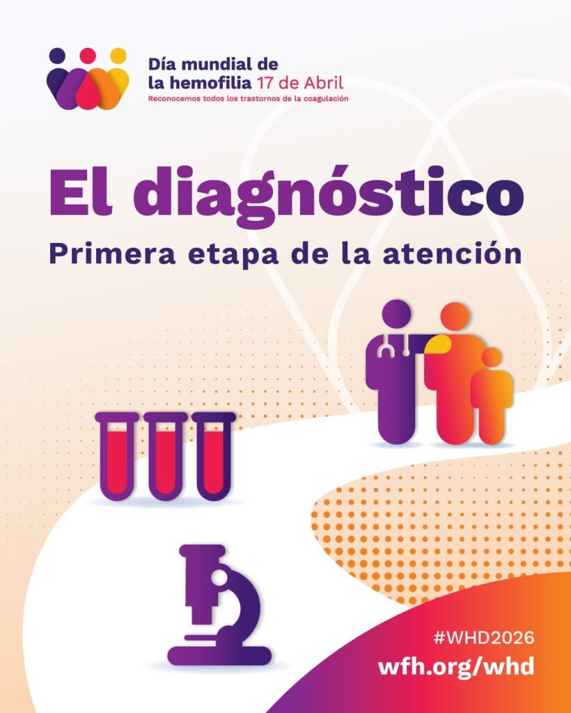 El 17 de abril de 2026, la comunidad mundial de trastornos de la coagulación hereditarios se reunirá con motivo del Día mundial de la hemofilia para abogar por todos los trastornos de la coagulación hereditarios. El tema de este año, El diagnóstico: primera etapa de la atención, destaca la importancia crucial del diagnóstico, el primer paso indispensable para el tratamiento y la atención.